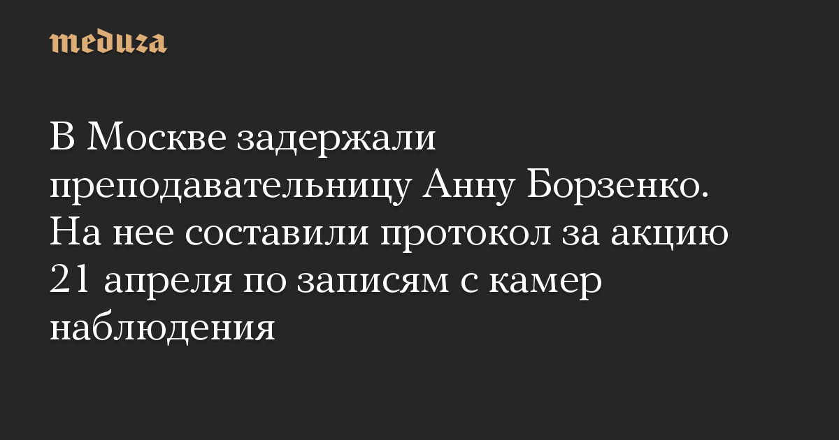 В Москве задержали преподавательницу Анну Борзенко. На нее составили протокол за акцию 21 апреля по записям с камер наблюдения