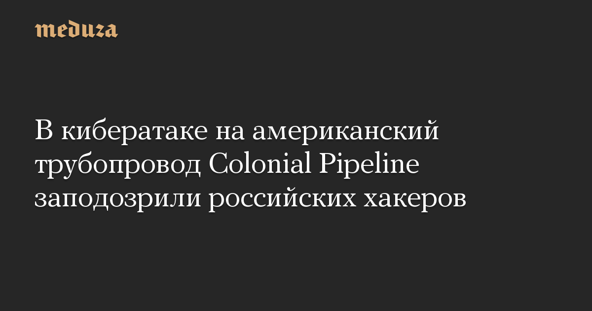 В кибератаке на американский трубопровод Colonial Pipeline заподозрили российских хакеров
