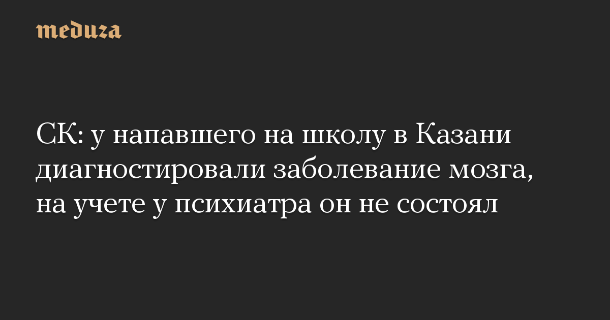 СК: у напавшего на школу в Казани диагностировали заболевание мозга, на учете у психиатра он не состоял