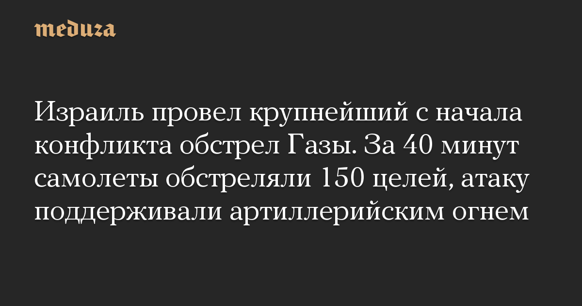 Израиль провел крупнейший с начала конфликта обстрел Газы. За 40 минут самолеты обстреляли 150 целей, атаку поддерживали артиллерийским огнем