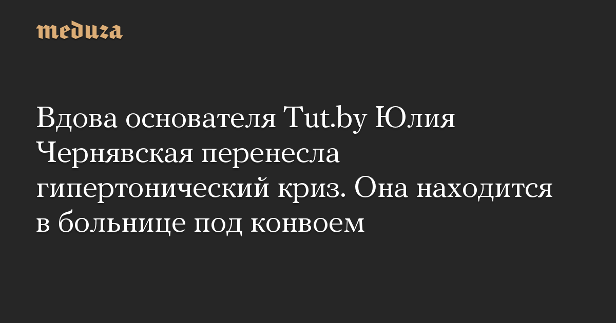 Вдова основателя Tut.by Юлия Чернявская перенесла гипертонический криз. Она находится в больнице под конвоем