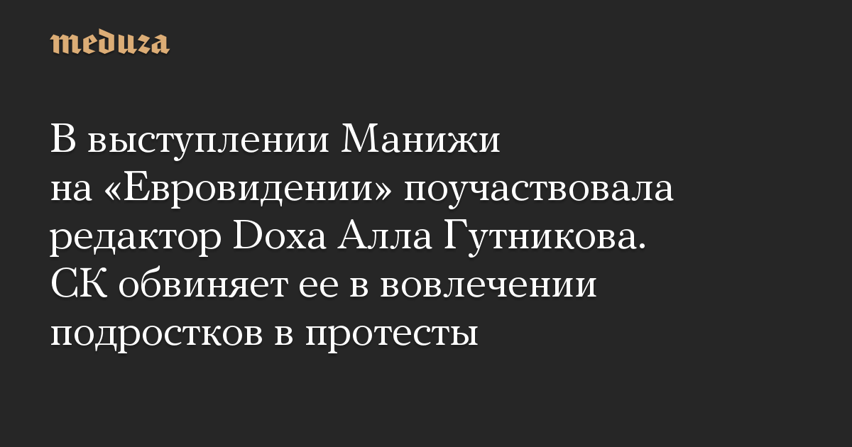 В выступлении Манижи на «Евровидении» поучаствовала редактор Doxa Алла Гутникова. СК обвиняет ее в вовлечении подростков в протесты