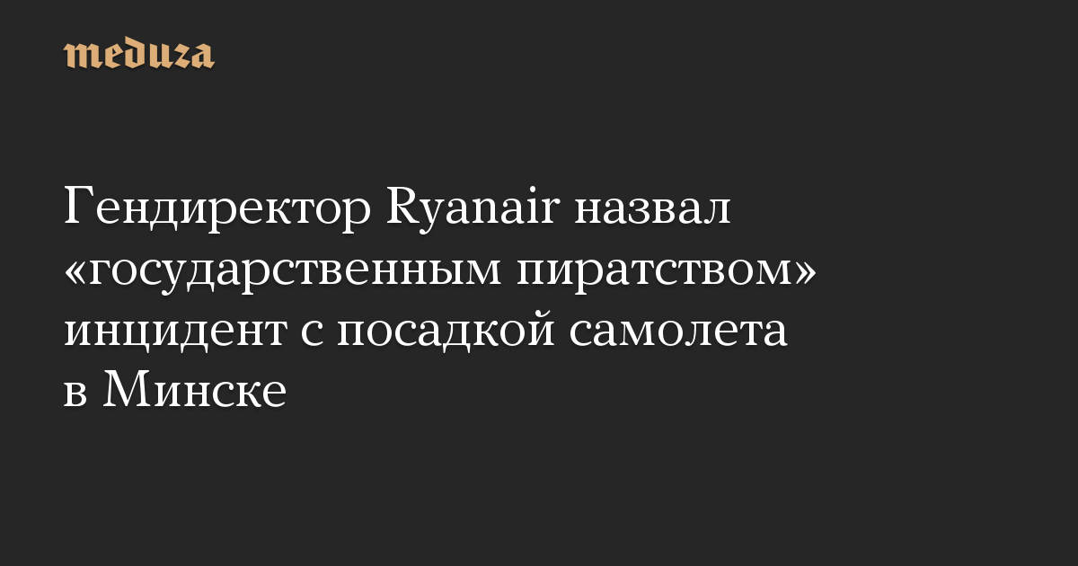 Гендиректор Ryanair назвал «государственным пиратством» инцидент с посадкой самолета в Минске