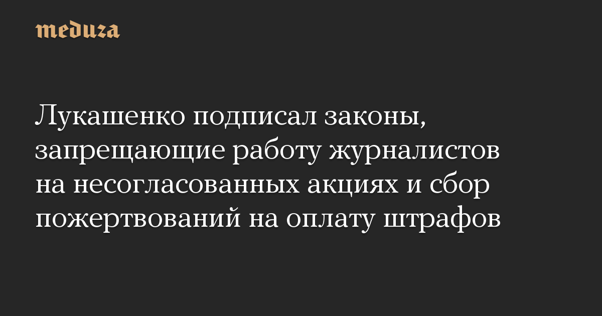 Лукашенко подписал законы, запрещающие работу журналистов на несогласованных акциях и сбор пожертвований на оплату штрафов