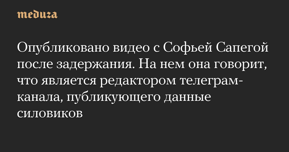 Опубликовано видео с Софьей Сапегой после задержания. На нем она говорит, что является редактором телеграм-канала, публикующего данные силовиков