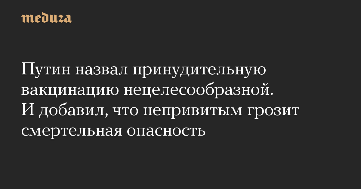 Путин назвал принудительную вакцинацию нецелесообразной. И добавил, что непривитым грозит смертельная опасность