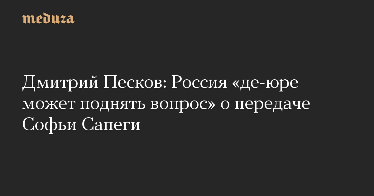 Дмитрий Песков: Россия «де-юре может поднять вопрос» о передаче Софьи Сапеги