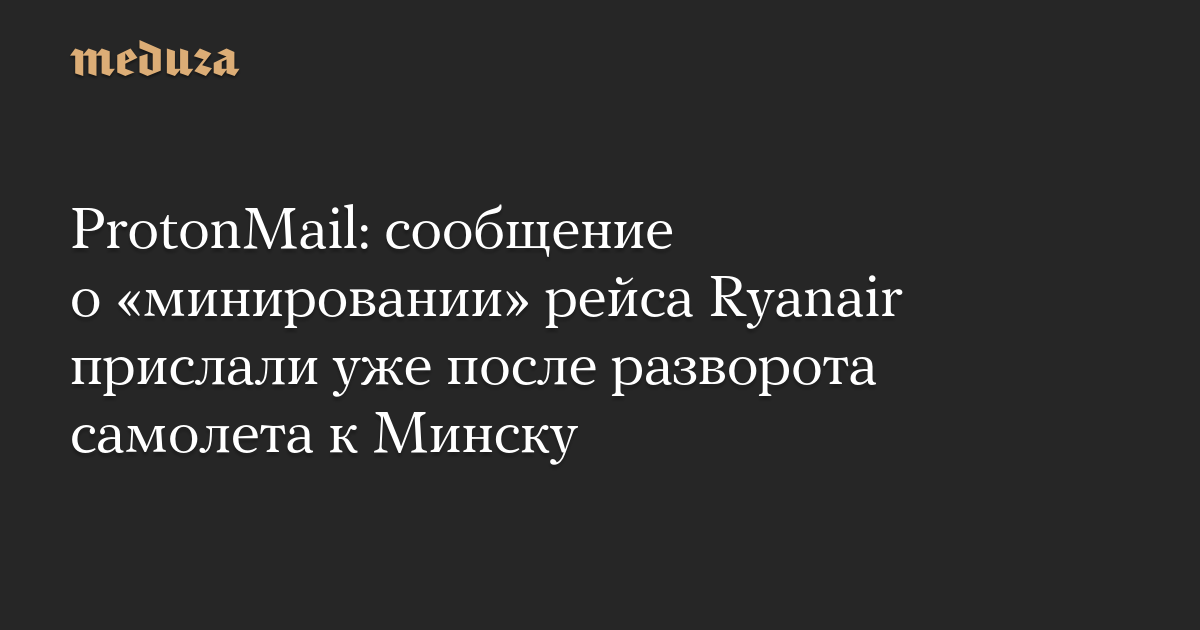 Электронное сообщение о минировании самолета Ryanair, экстренно посаженного в Минске 23 мая, было отправлено уже после того, как рейс развернули в сторону белорусской столицы. Об этом говорится в заявлении швейцарской компании Proton Technologies AG, разработчика сервиса шифрованной электронной почты ProtonMail.
