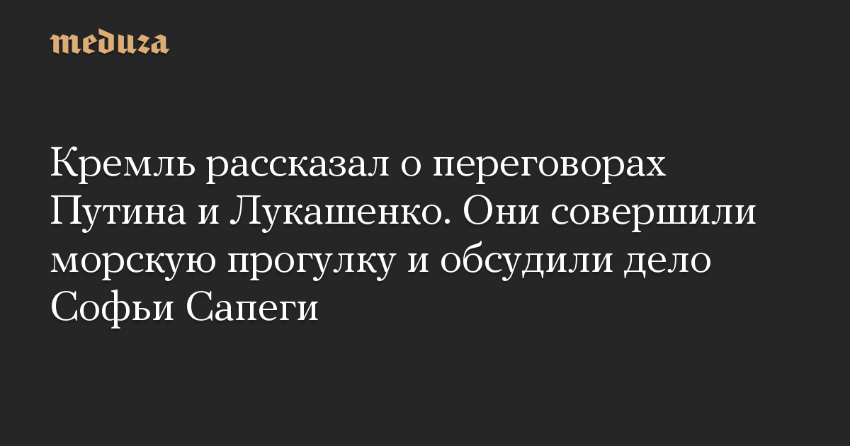 Песков также добавил, что во второй день переговоров Путин и Лукашенко совершили морскую прогулку. Фото с нее выложил связанный с пресс-службой Лукашенко телеграм-канал «Пул первого».