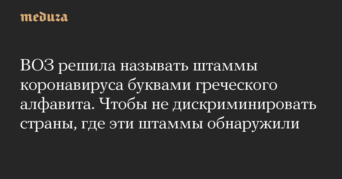 ВОЗ решила называть штаммы коронавируса буквами греческого алфавита. Чтобы не дискриминировать страны, где эти штаммы обнаружили