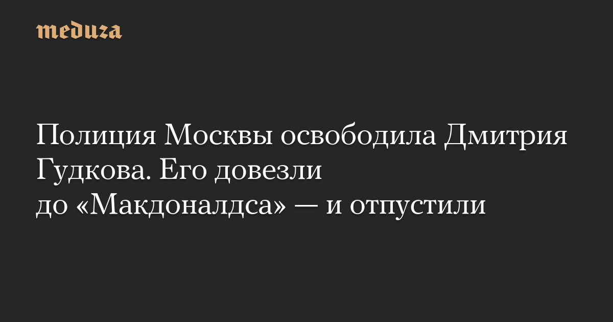 Полиция Москвы освободила Дмитрия Гудкова. Его довезли до «Макдоналдса» — и отпустили
