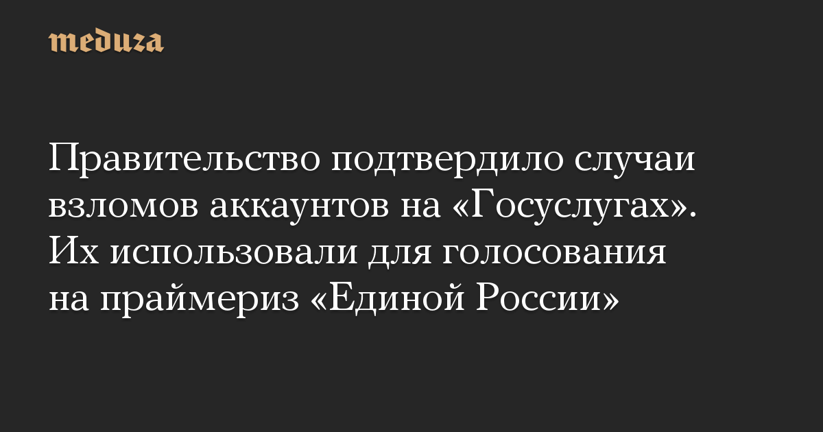 Накануне стало известно о случаях несанкционированного доступа к аккаунтам на «Госуслугах» от имени Центра обработки персональных данных «Единой России». В частности, об этом рассказала ведущая «Эха Москвы» Арина Бородина. В ее личных данных поменяли место прописки с московской на челябинскую, после чего без ее ведома из аккаунта был совершен переход на сайт праймериз «Единой России». О похожих взломах «Медузе» также сообщили читатели.