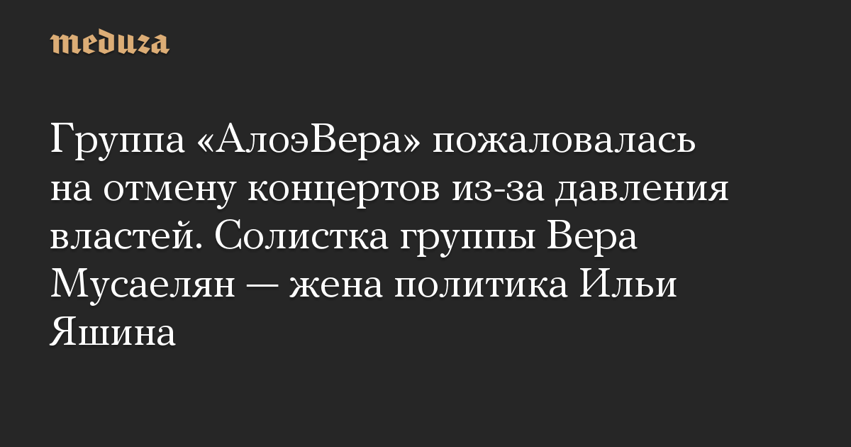 Группа «АлоэВера» пожаловалась на отмену концертов из-за давления властей. Солистка группы Вера Мусаелян — жена политика Ильи Яшина