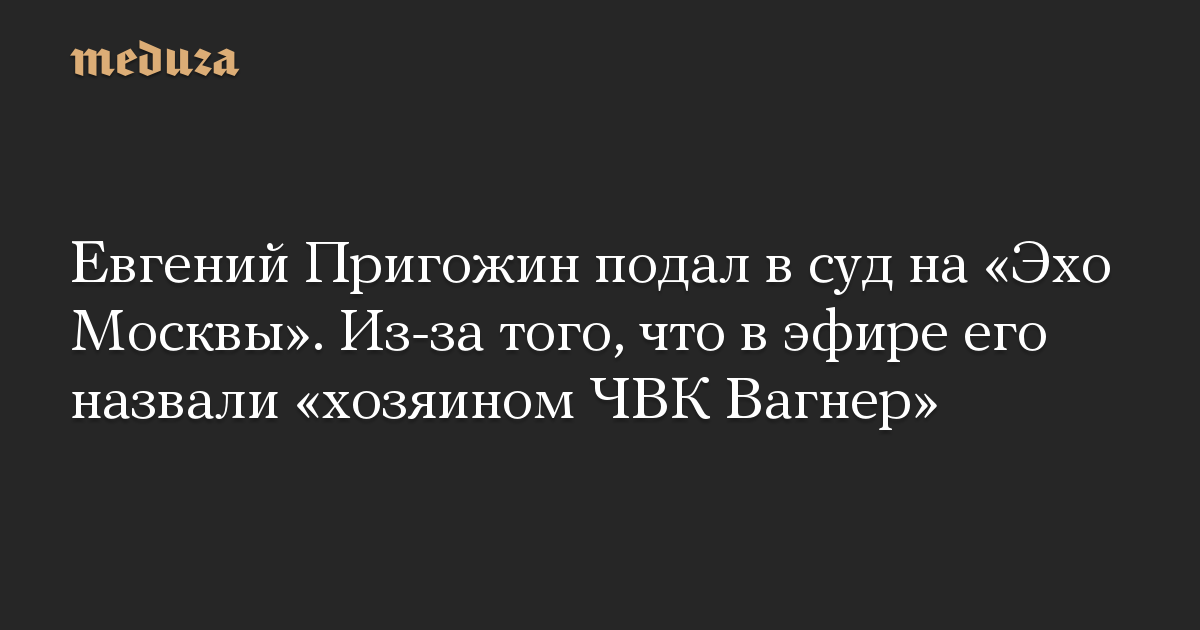 Евгений Пригожин подал в суд на «Эхо Москвы». Из-за того, что в эфире его назвали «хозяином ЧВК Вагнер»