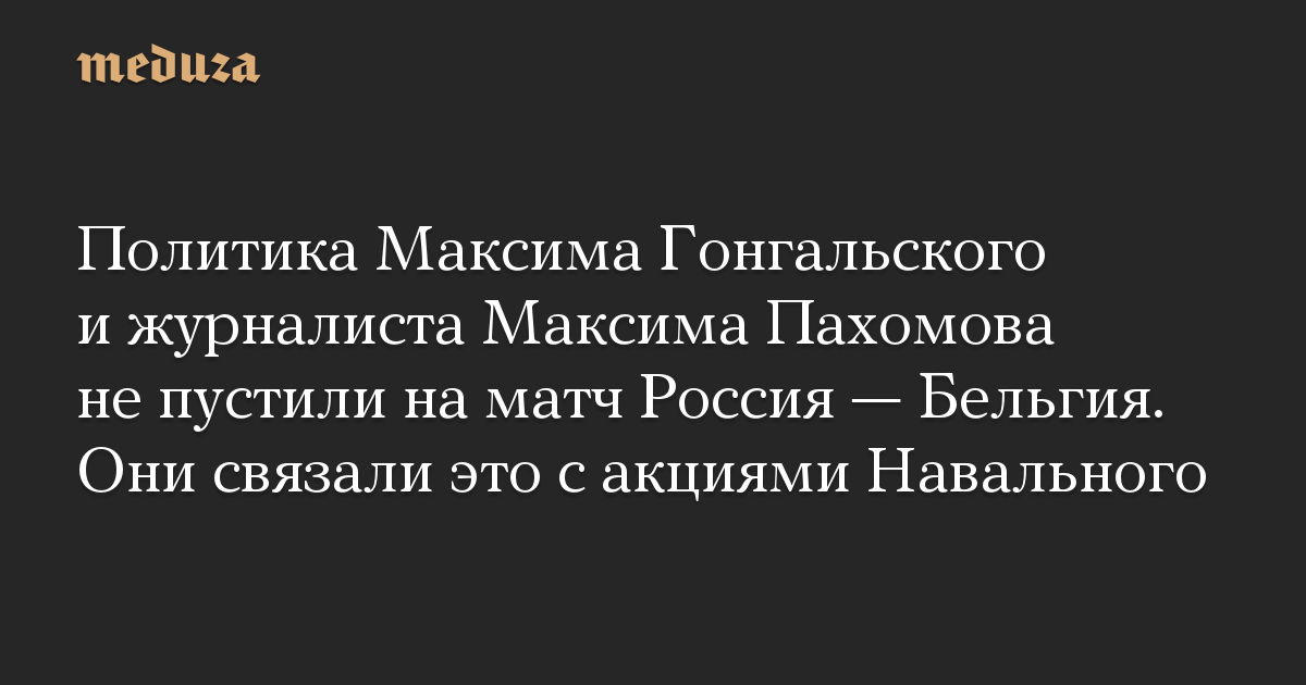 Политика Максима Гонгальского и журналиста Максима Пахомова не пустили на матч Россия — Бельгия. Они связали это с акциями Навального