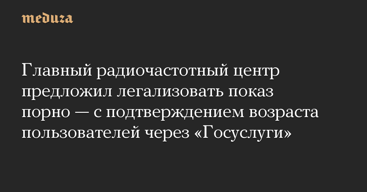 Главный радиочастотный центр предложил легализовать показ порно — с подтверждением возраста пользователей через «Госуслуги»