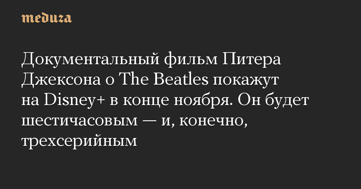 Документальный фильм Питера Джексона о The Beatles покажут на Disney+ в конце ноября. Он будет шестичасовым — и, конечно, трехсерийным