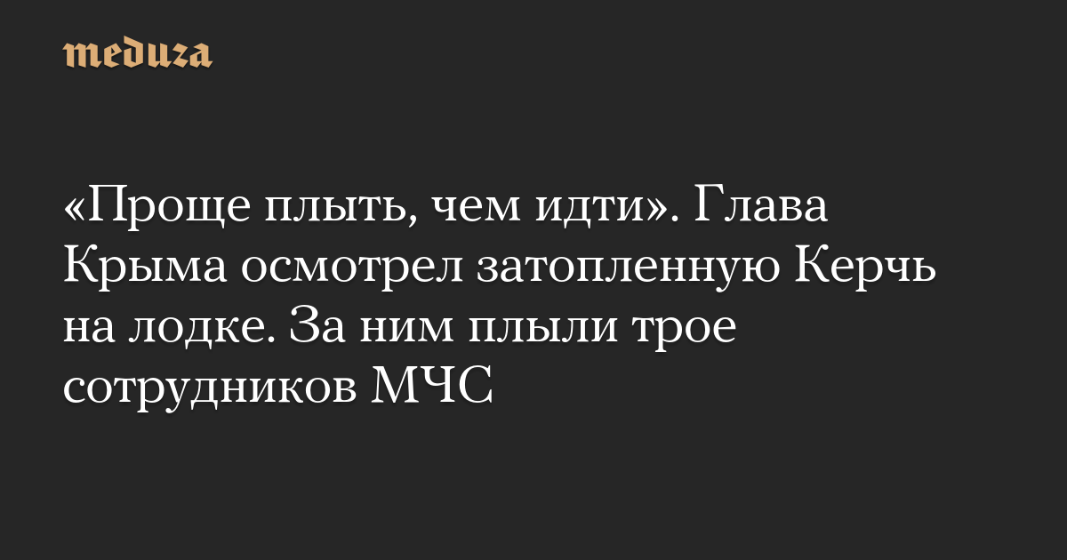 «Проще плыть, чем идти». Глава Крыма осмотрел затопленную Керчь на лодке. За ним плыли трое сотрудников МЧС