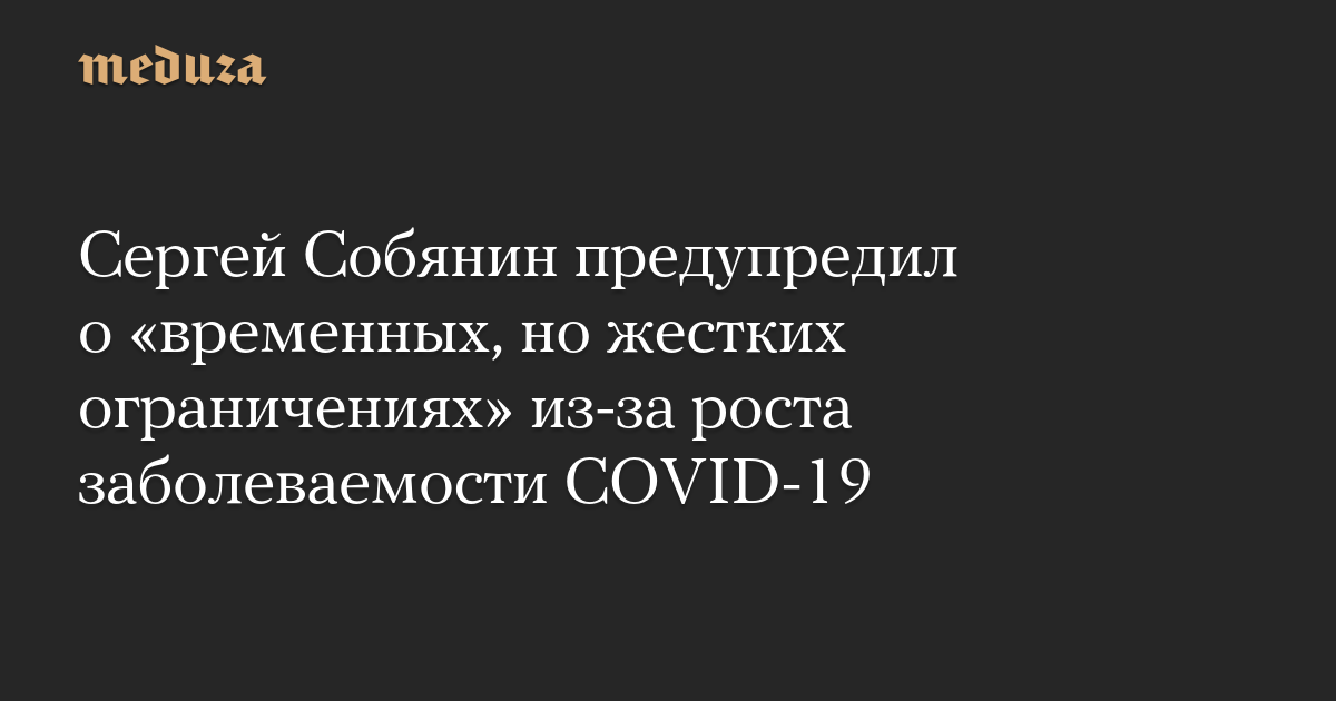 «Еще раз скажу, что все равно это не безграничные возможности, мы находимся очень близко к более жестким решениям, — временным, но жестким решениям по ограничениям», — сказал Собянин на встрече с рестораторами (цитата по «Интерфаксу»).