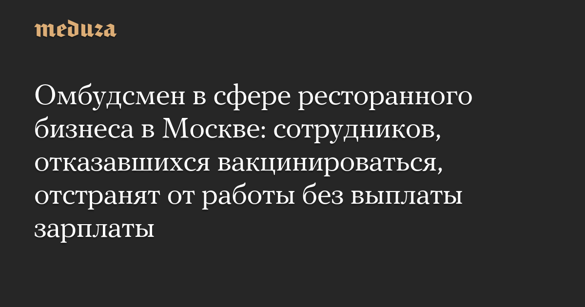 Омбудсмен в сфере ресторанного бизнеса в Москве: сотрудников, отказавшихся вакцинироваться, отстранят от работы без выплаты зарплаты