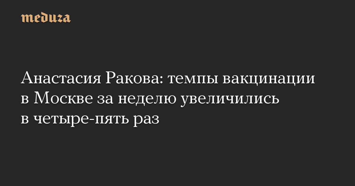 Анастасия Ракова: темпы вакцинации в Москве за неделю увеличились в четыре-пять раз