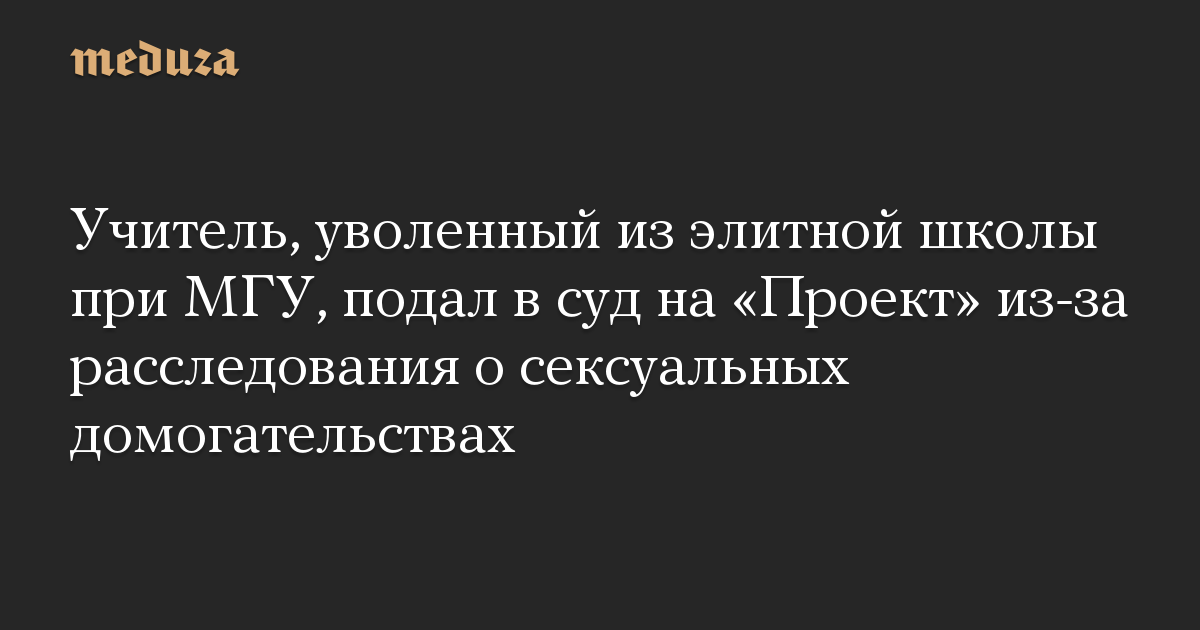 Учитель, уволенный из элитной школы при МГУ, подал в суд на «Проект» из-за расследования о сексуальных домогательствах