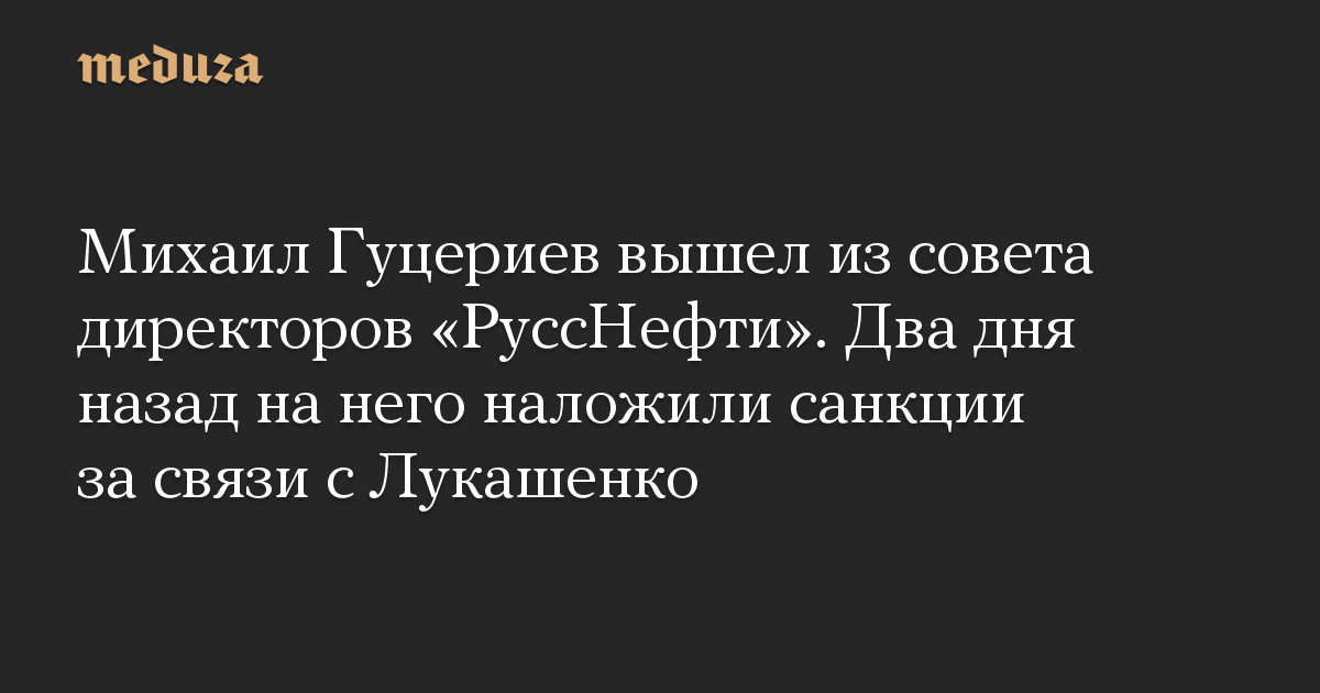 Михаил Гуцериев вышел из совета директоров «РуссНефти». Два дня назад на него наложили санкции за связи с Лукашенко