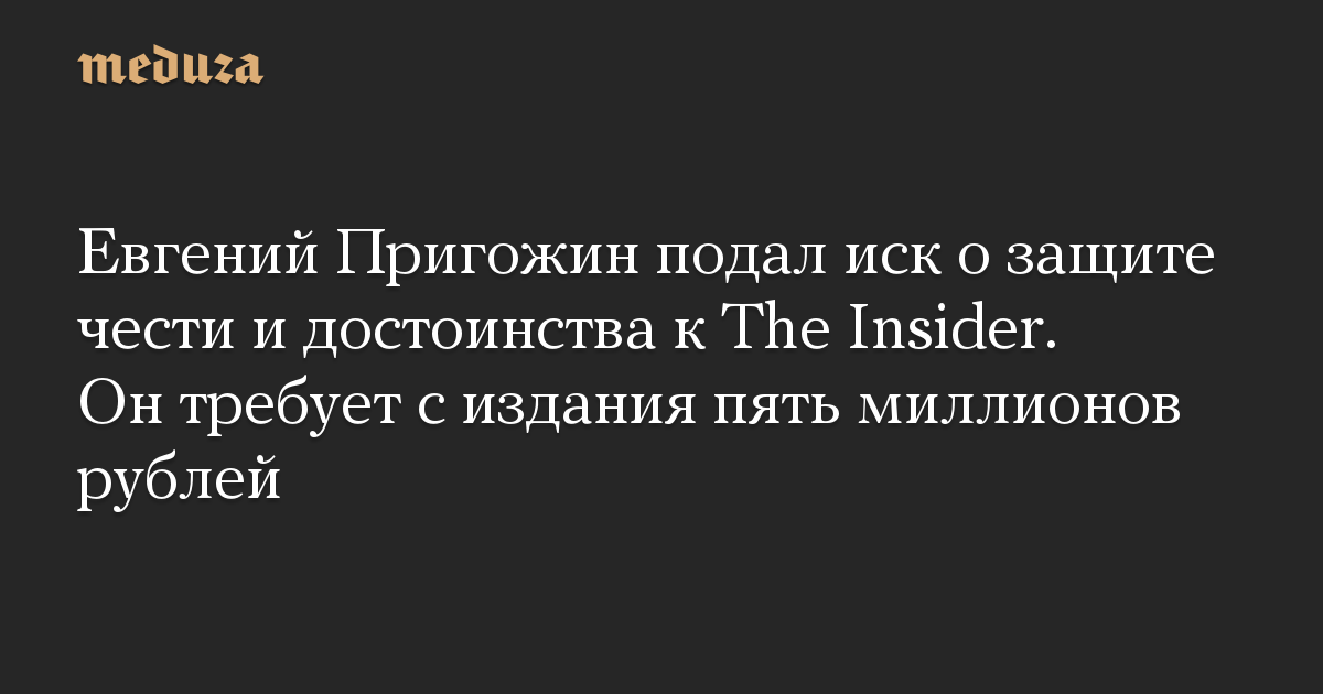 Евгений Пригожин подал иск о защите чести и достоинства к The Insider. Он требует с издания пять миллионов рублей
