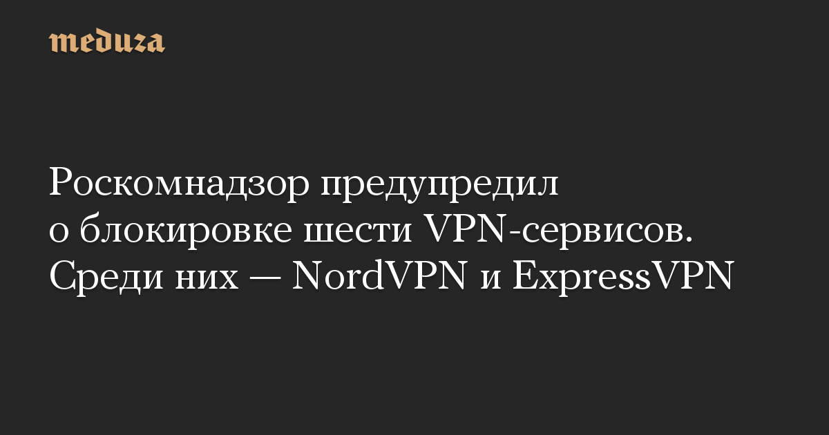 Роскомнадзор предупредил о блокировке шести VPN-сервисов. Среди них — NordVPN и ExpressVPN
