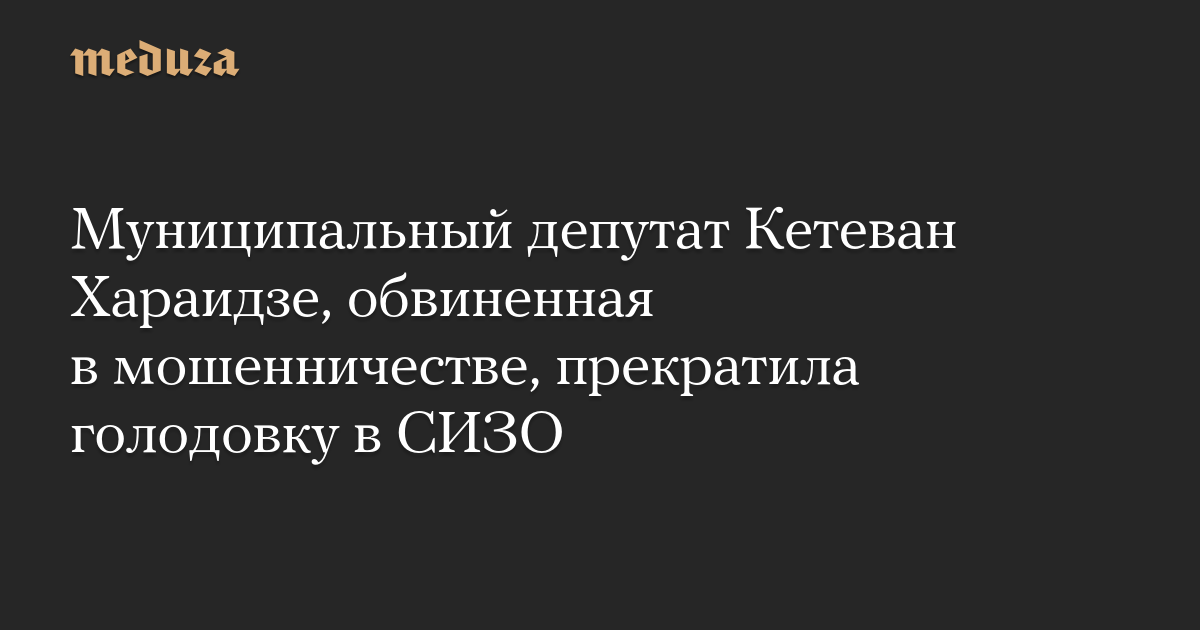 Муниципальный депутат Тверского района Москвы Кетеван Хараидзе, находящаяся в СИЗО-6 по подозрению в мошенничестве, прекратила голодовку, начатую в знак протеста против своего уголовного преследования. Об этом журналистам рассказала ее адвокат Евгения Григорьева.