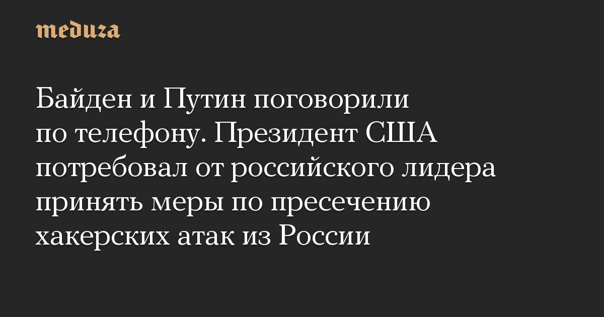 В сообщении Белого дома отмечается, что президенты обсудили недавние хакерские атаки, которые осуществляют «преступники, базирующиеся в России» и что Байден потребовал от Путина принять меры по пресечению деятельности этих группировок.