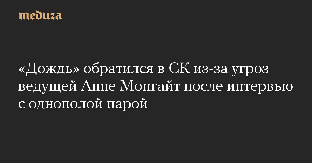 «Дождь» обратился в СК из-за угроз ведущей Анне Монгайт после интервью с однополой парой