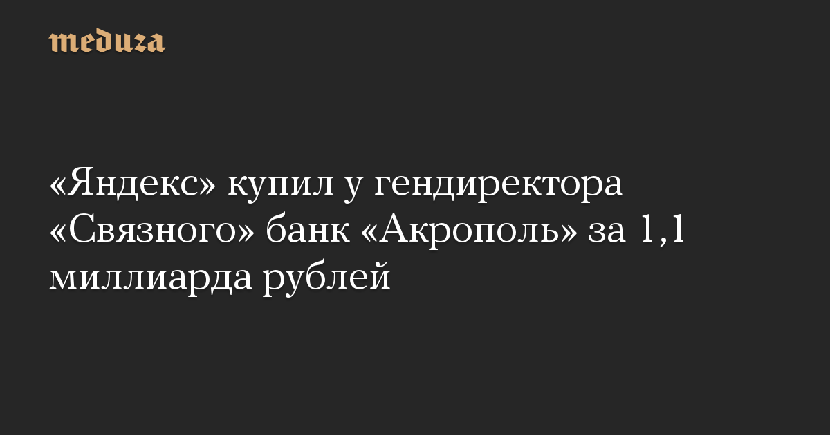 «Яндекс» купил у гендиректора «Связного» банк «Акрополь» за 1,1 миллиарда рублей