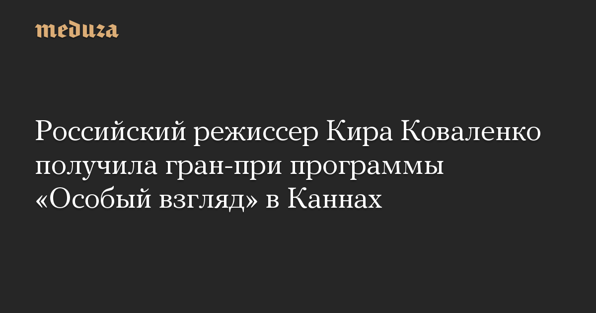 Российский режиссер Кира Коваленко получила гран-при программы «Особый взгляд» в Каннах