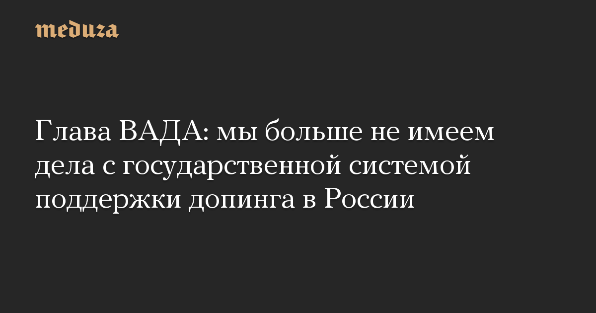 Глава ВАДА: мы больше не имеем дела с государственной системой поддержки допинга в России