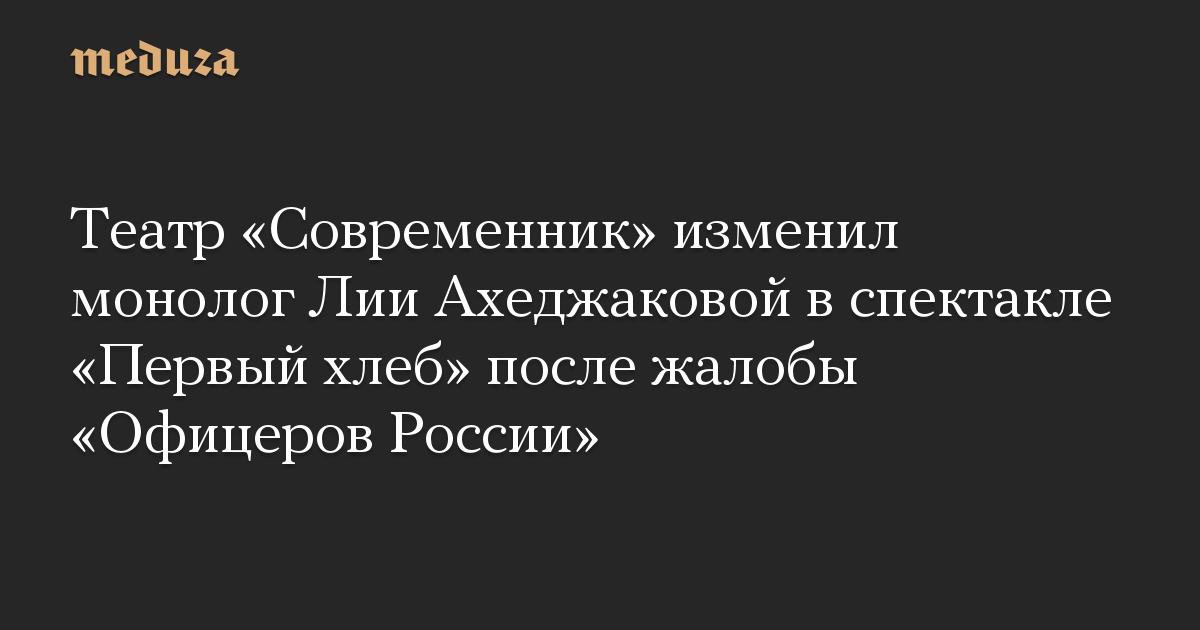 Театр «Современник» изменил монолог Лии Ахеджаковой в спектакле «Первый хлеб» после жалобы «Офицеров России»