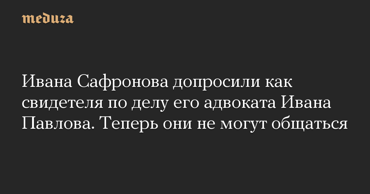 Ивана Сафронова допросили как свидетеля по делу его адвоката Ивана Павлова. Теперь они не могут общаться