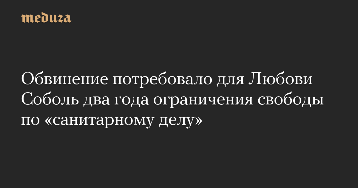 Обвинение потребовало приговорить юриста Любовь Соболь к двум годам ограничения свободы по «санитарному делу». Об этом сообщил ее адвокат Владимир Воронин.