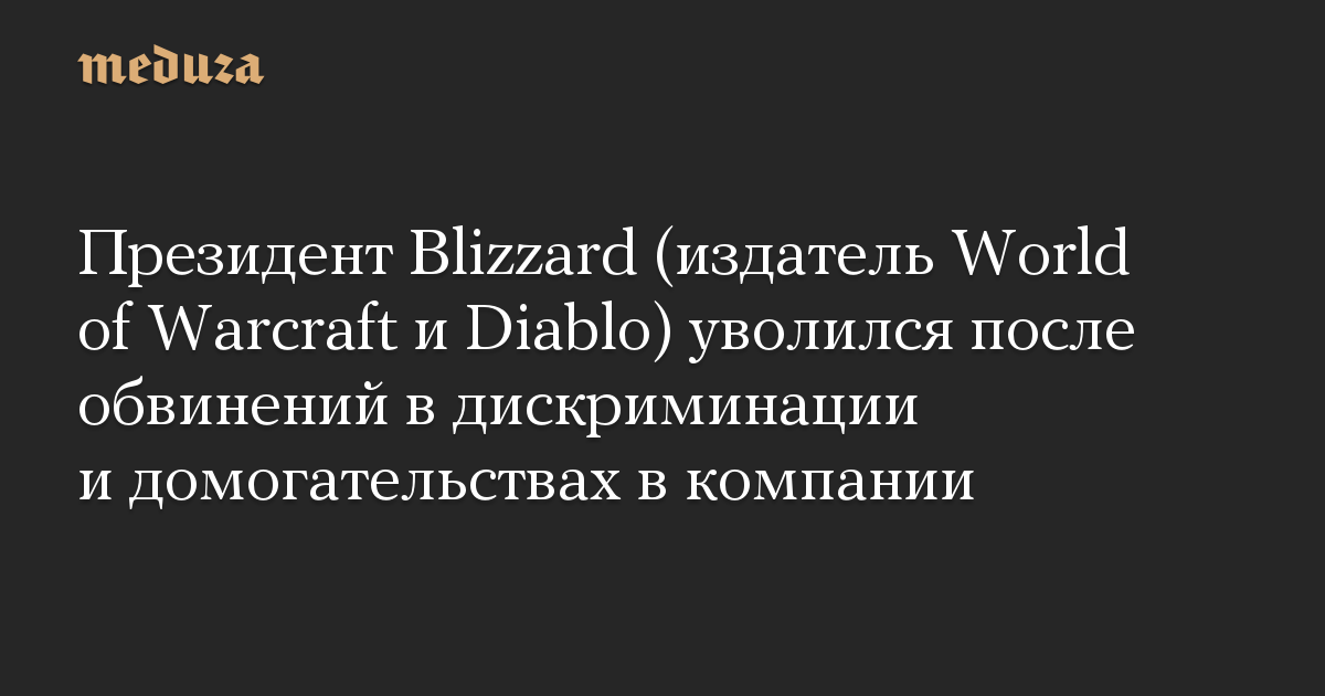 Президент Blizzard (издатель World of Warcraft и Diablo) уволился после обвинений в дискриминации и домогательствах в компании