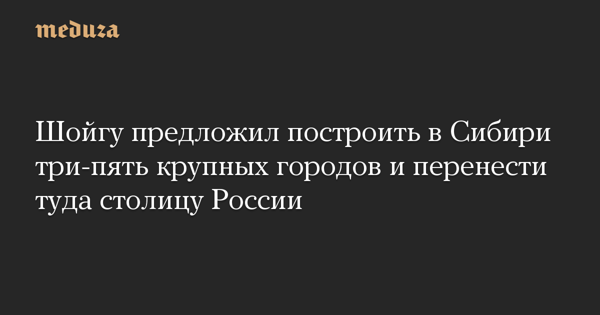 Министр обороны РФ Сергей Шойгу предложил построить в Сибири три-пять городов с населением до одного миллиона человек и перенести туда столицу России. Об этом он заявил на встрече с научной общественностью Сибирского отделения РАН в Новосибирске.