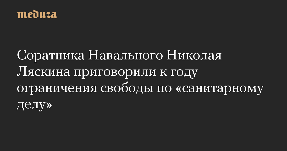 Вынесен приговор еще одному фигуранту так называемого санитарного дела. Соратнику Навального Николаю Ляскину суд назначил наказание в виде ограничения свободы сроком на один год.