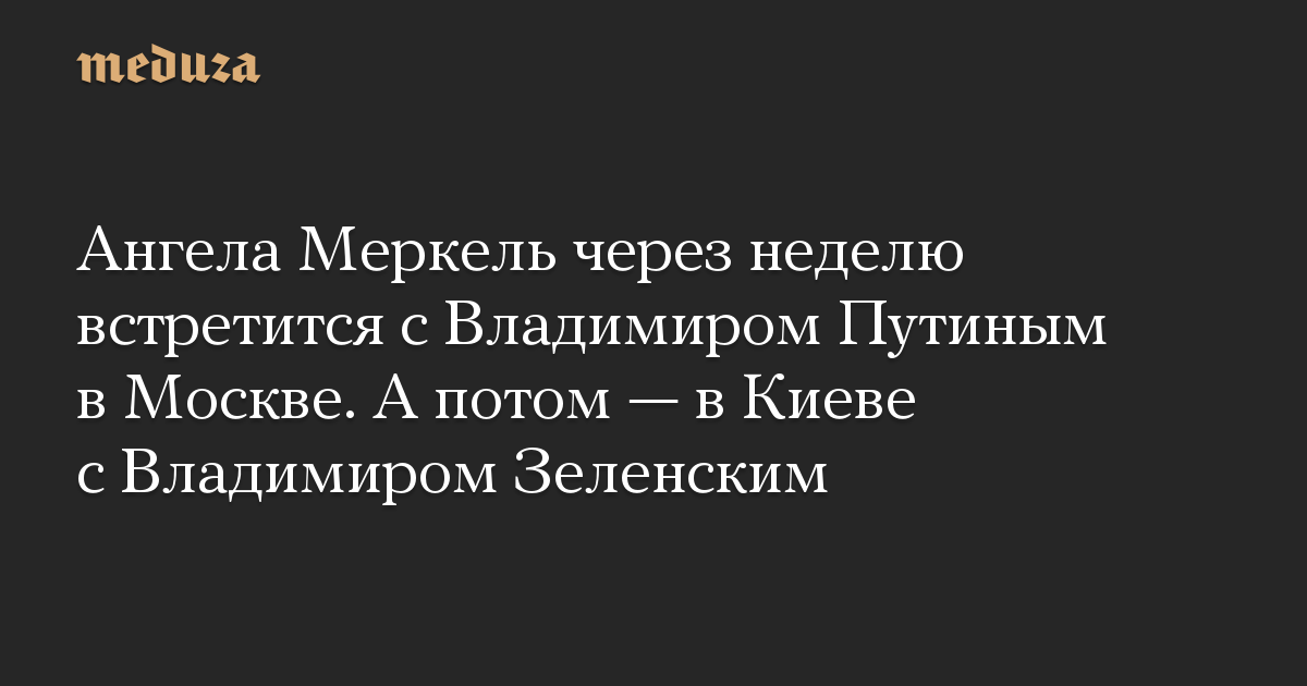 Ангела Меркель через неделю встретится с Владимиром Путиным в Москве. А потом — в Киеве с Владимиром Зеленским