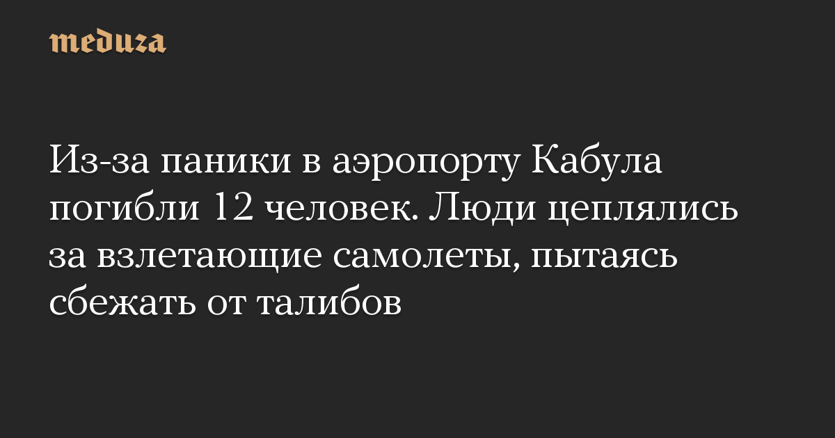 Из-за паники в аэропорту Кабула погибли 12 человек. Люди цеплялись за взлетающие самолеты, пытаясь сбежать от талибов