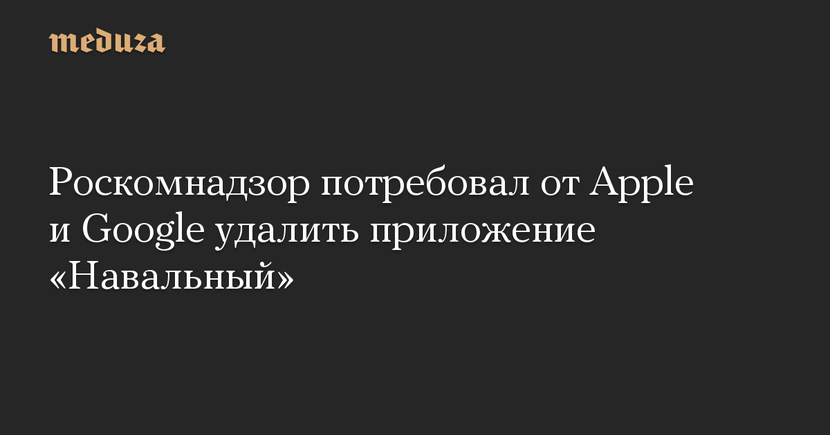 Роскомнадзор обратился к компаниям Apple и Google с требованием удалить приложение «Навальный» из магазинов App Store и Google Play соответственно. Об этом сообщает ТАСС со ссылкой на пресс-службу Роскомнадзора.