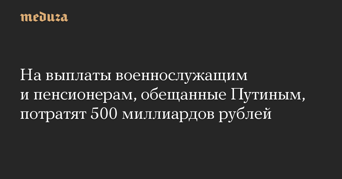 На выплаты военнослужащим и пенсионерам, обещанные Путиным, потратят 500 миллиардов рублей