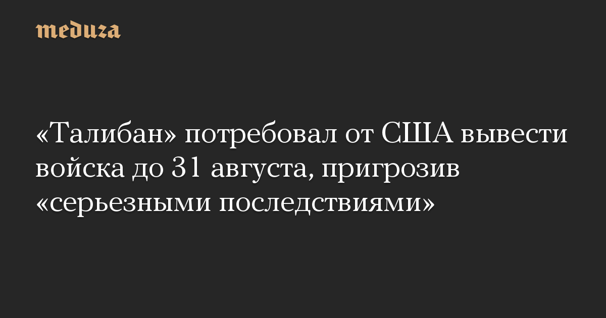 «Талибан» потребовал от США вывести войска до 31 августа, пригрозив «серьезными последствиями»