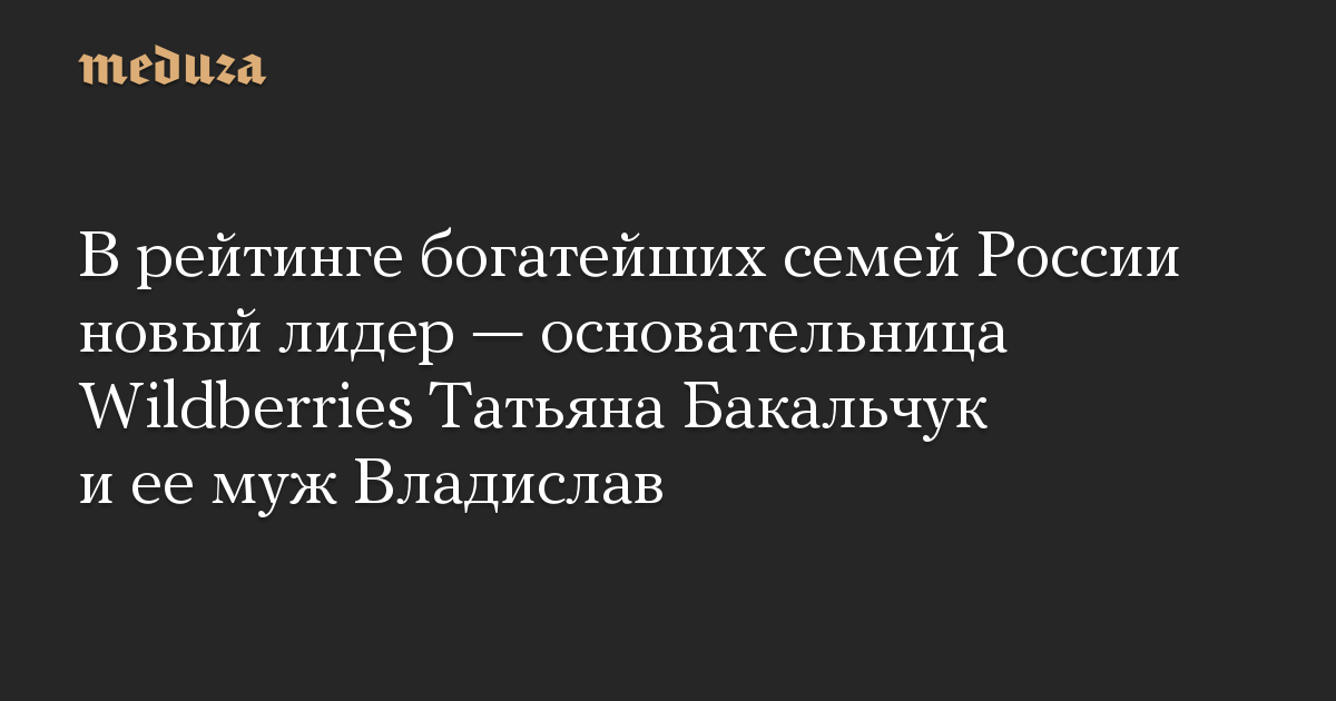 В рейтинге богатейших семей России новый лидер — основательница Wildberries Татьяна Бакальчук и ее муж Владислав