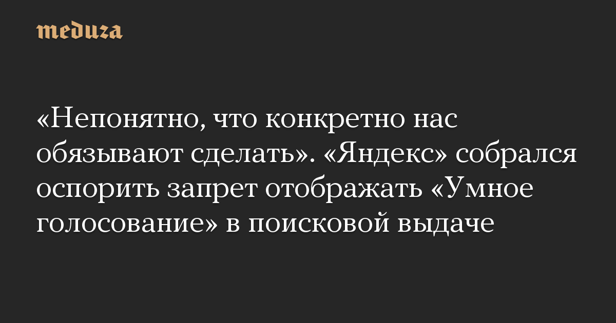 «Непонятно, что конкретно нас обязывают сделать». «Яндекс» собрался оспорить запрет отображать «Умное голосование» в поисковой выдаче