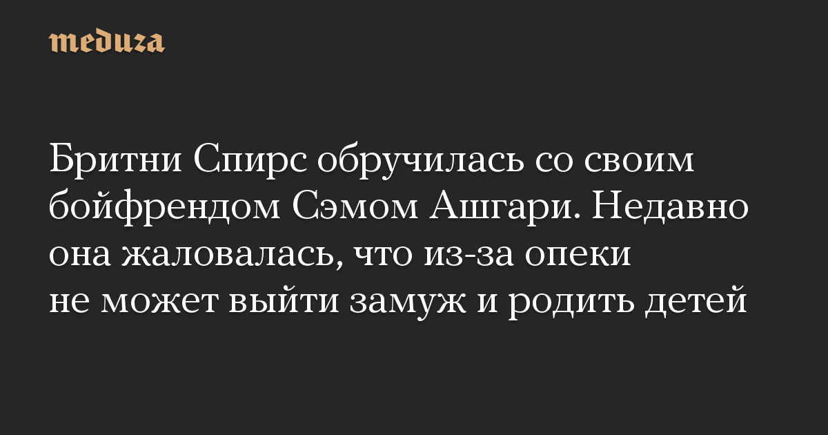 Бритни Спирс обручилась со своим бойфрендом Сэмом Ашгари. Недавно она жаловалась, что из-за опеки не может выйти замуж и родить детей