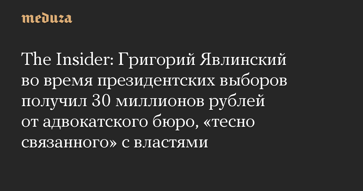 The Insider: Григорий Явлинский во время президентских выборов получил 30 миллионов рублей от адвокатского бюро, «тесно связанного» с властями